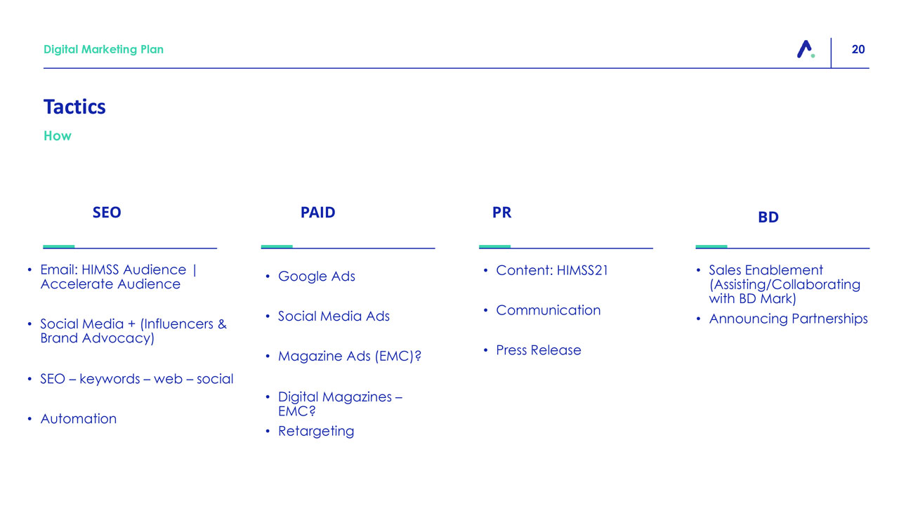 - Implement Strategic Integrated Marketing Initiatives: Organic, Paid, PR, WEB, Social, Email